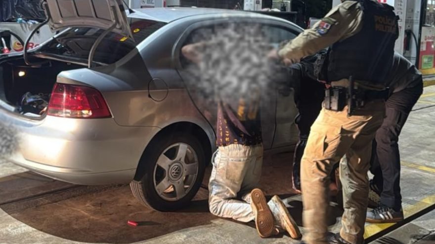Na noite de terça-feira, a Polícia Civil recebeu a informação de que o carro transitava pela PR-484, em Quedas do Iguaçu. Com isso, policiais civis e militares montaram um cerco na região e conseguiram localizar o automóvel em um posto de combustíveis, onde realizaram a abordagem aos ocupantes.