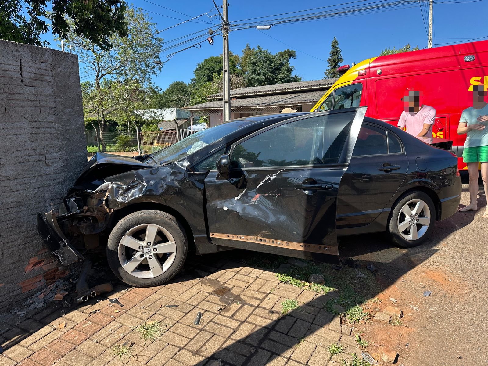 De acordo com os socorristas, o condutor da motocicleta teria cortado a frente do automóvel, momento em que o motorista do carro acabou atingindo a moto e, na sequência, colidiu contra um muro.