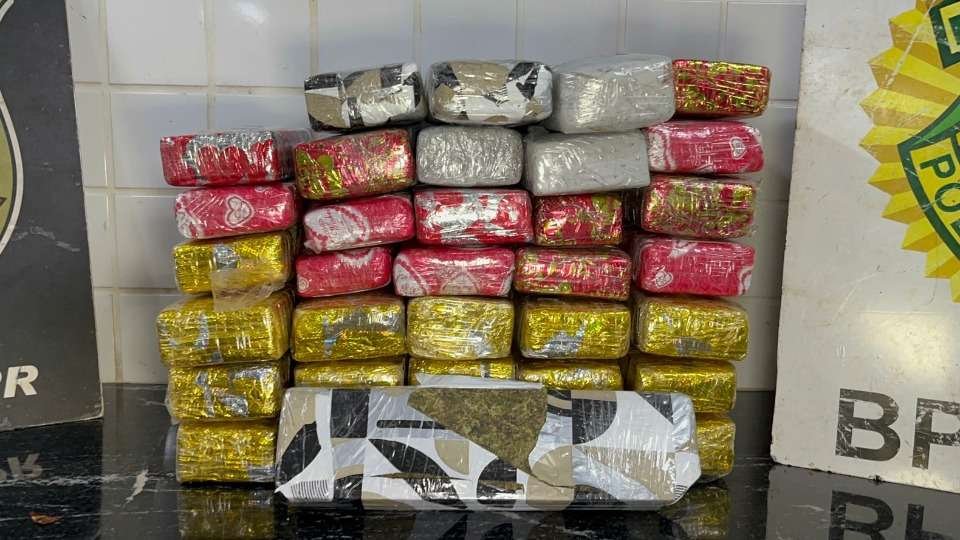 A Polícia Rodoviária Federal apreendeu, nesta sexta-feira (12), 35 tabletes de maconha durante fiscalização no pedágio da BR-277, em Céu Azul.