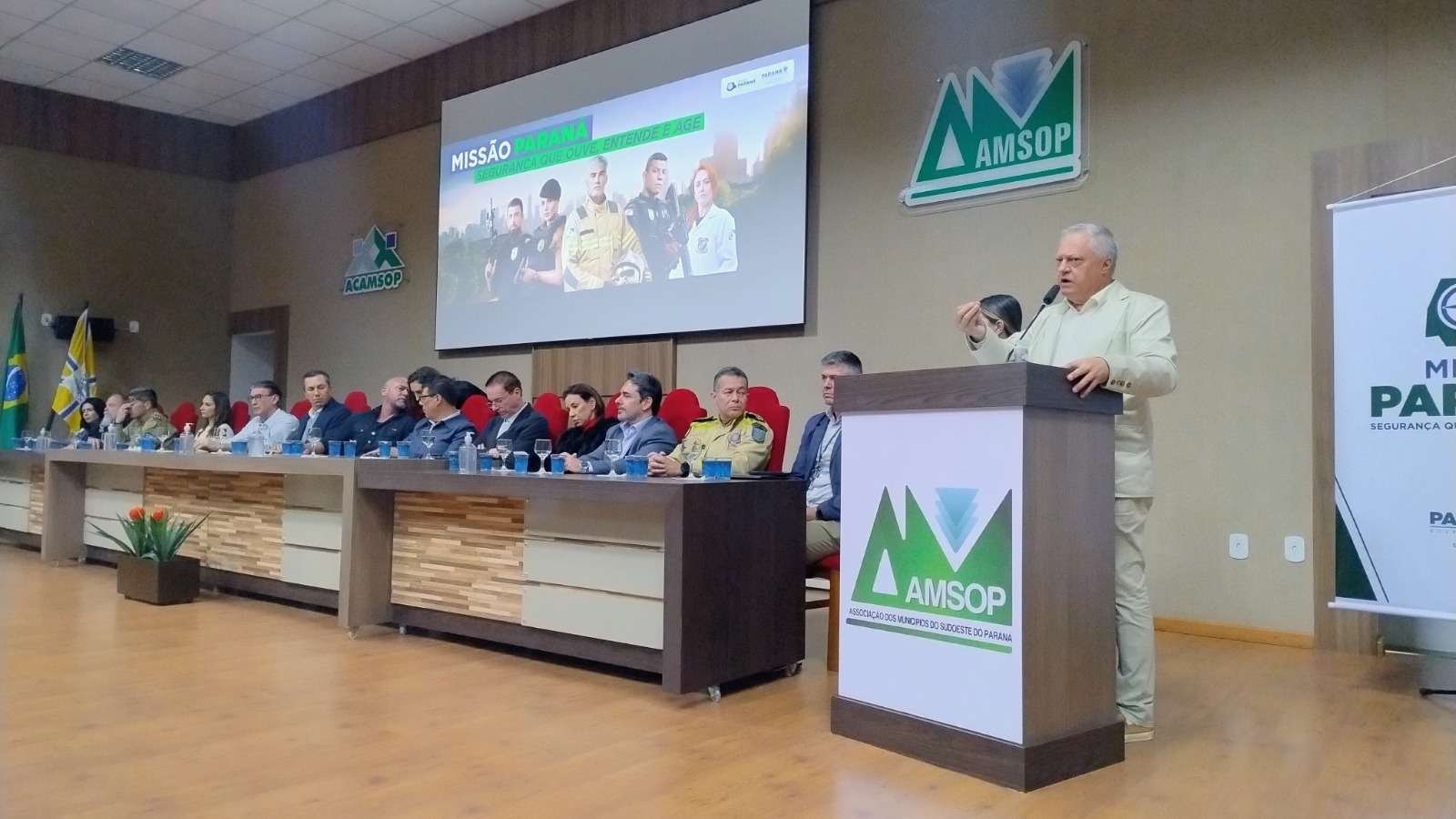 A Associação dos Municípios do Sudoeste do Paraná (Amsop) recebeu, nesta sexta-feira (25), a Missão Paraná, uma iniciativa da secretaria de Estado da Segurança Pública que une esforços operacionais e estratégias participativas para fortalecer a segurança pública de forma integrada e regionalizada.