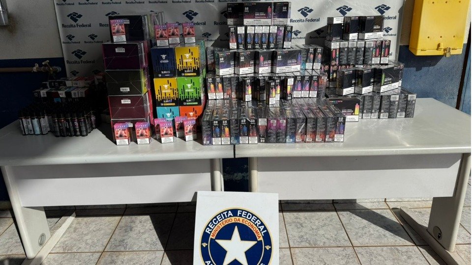 O condutor obedeceu a ordem de parada, e ao ser proceder a vistoria no do veículo foi constatado grande quantidade de cigarros eletrônicos e essências que estavam acondicionados em duas caixas, uma dentro do porta malas e outra no banco de trás do veículo coberta por um pano preto.
