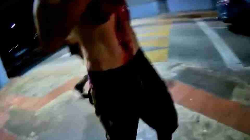 Nas imagens, o homem aparece ensanguentado e conversa com os policiais. Durante a ocorrência, o autor, de 46 anos, que havia fugido retornou ao terminal, passou pelos policiais e com uma faca de aproximadamente 20 cm atingiu a vítima com mais dois golpes na região do tórax. Confome a PM, os policiais fizeram uso de força moderada para conter o agressor.