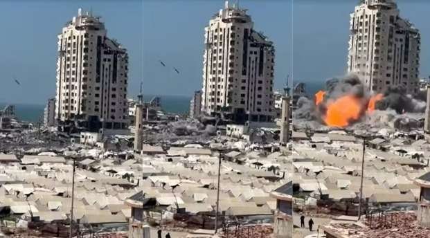Um bombardeio israelense nesta sexta-feira (5) derrubou um prédio residencial de 14 andares na Cidade de Gaza, maior cidade do território palestino. O edifício Mushtaha, como é conhecido, é o 2º maior da Faixa de Gaza. Ainda não se sabe se se o ataque deixou vítimas.