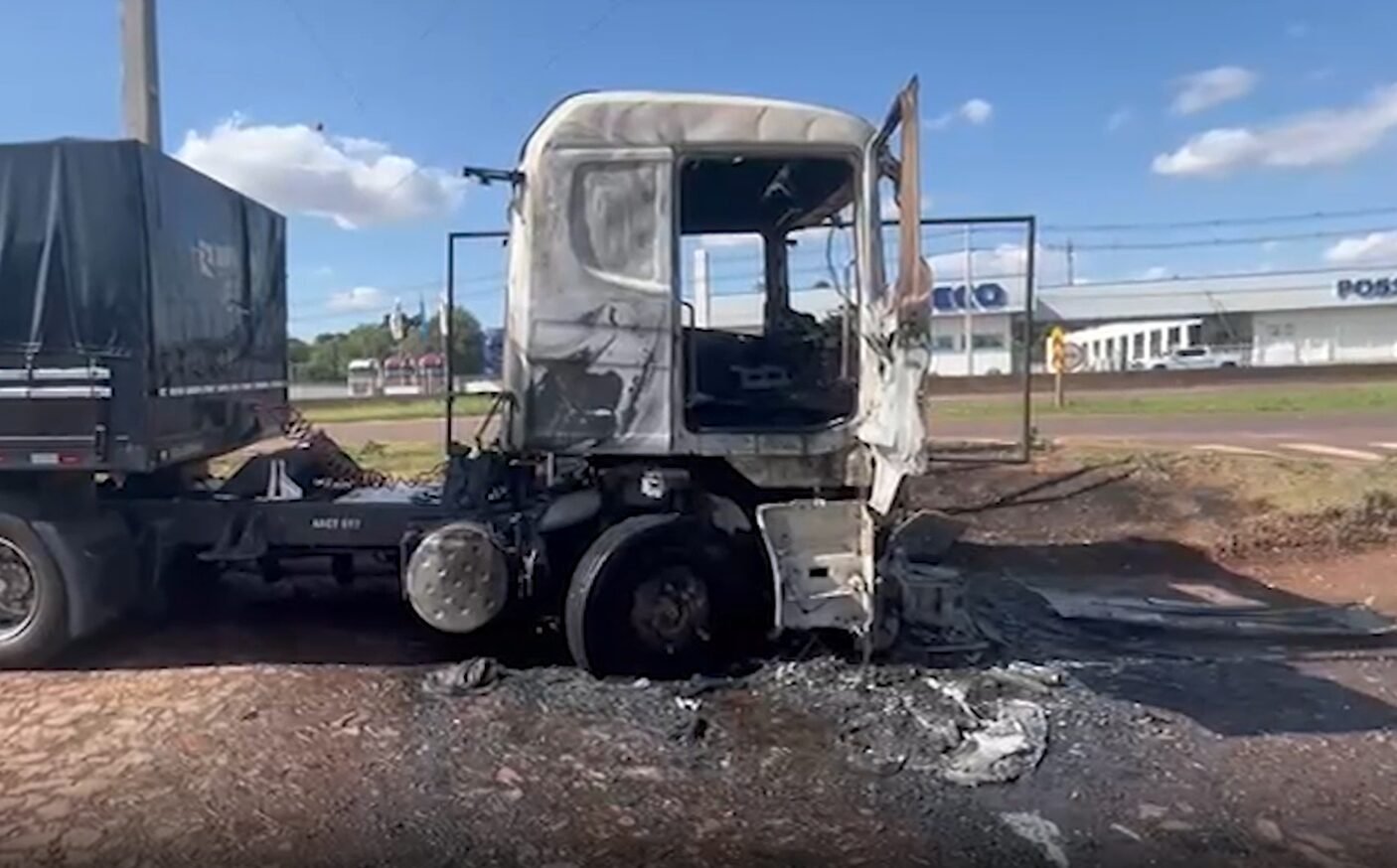 A cabine de um caminhão pegou fogo na tarde deste domingo (28) na BR-277, próximo ao autódromo, em Cascavel.