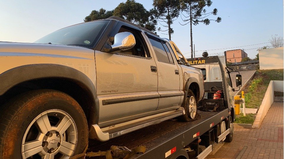 Uma equipe da Polícia Militar estava em patrulhamento pela região sul de Cascavel, quando avistou a caminhonete com a suspensão baixa no cruzamento da avenida Carlos Gomes com a rua Rio da Paz e decidiu realizar a abordagem. O condutor não respeitou a ordem de parada e empreendeu fuga, realizando manobras perigosas na pista.