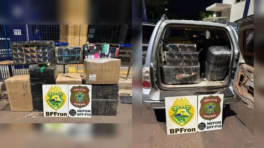 Foz do Iguaçu/PR – Em ação conjunta, a Polícia Federal e a Polícia Militar interceptaram, por volta das 23h30 desta terça-feira (16/12), um veículo carregado com centenas de cigarros eletrônicos na região da margem do Rio Iguaçu, em Foz do Iguaçu. A abordagem ocorreu após as equipes identificarem o transbordo de mercadorias provenientes do Paraguai, descarregadas por uma embarcação que navegava pelo Rio Paraná e adentrou o Rio Iguaçu.
