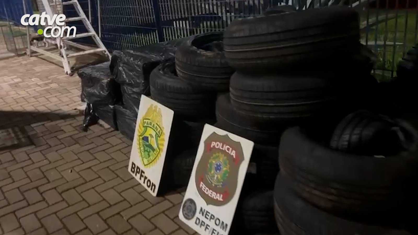 Aproximadamente 110 pneus e 5 mil maços de cigarros contrabandeados do Paraguai foram apreendidos na quarta-feira (4) em Foz do Iguaçu, em ação conjunta da Polícia Federal e da Polícia Militar.
