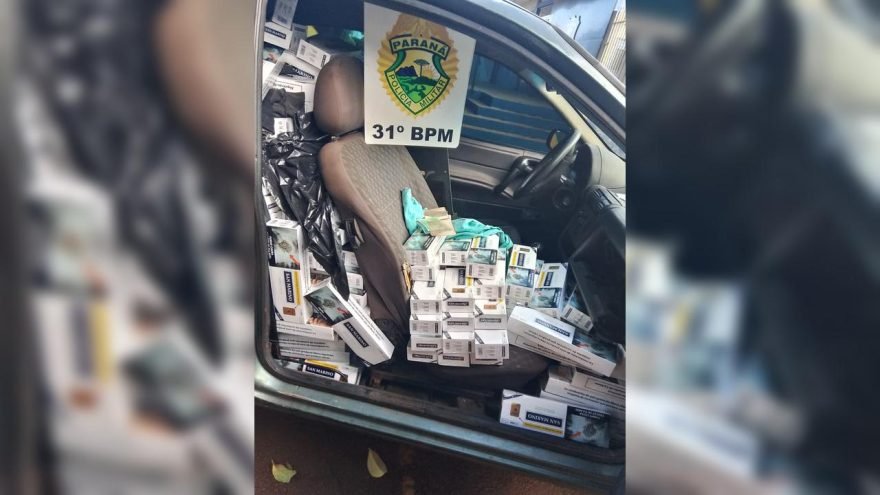 Segundo informações repassadas pela corporação, a ocorrência teve início quando um policial, em deslocamento de Terra Roxa para Palotina, avistou um veículo carregado com caixas de cigarros no distrito de São Camilo. Diante da suspeita, a equipe policial foi acionada e conseguiu realizar a abordagem do automóvel no trevo do contorno de Palotina, na saída para Terra Roxa.