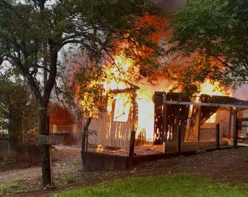 Na manhã desta segunda-feira (13), um incêndio destruiu por completo uma residência de madeira no bairro Pinheirão, em Francisco Beltrão. O Corpo de Bombeiros foi acionado para atender à ocorrência na Rua Amazonas e chegou rapidamente ao local, iniciando de imediato o combate às chamas. Apesar da intensidade do fogo e da estrutura ser de madeira, os bombeiros conseguiram evitar que o incêndio se alastrasse para uma casa vizinha, situada nos fundos do terreno.