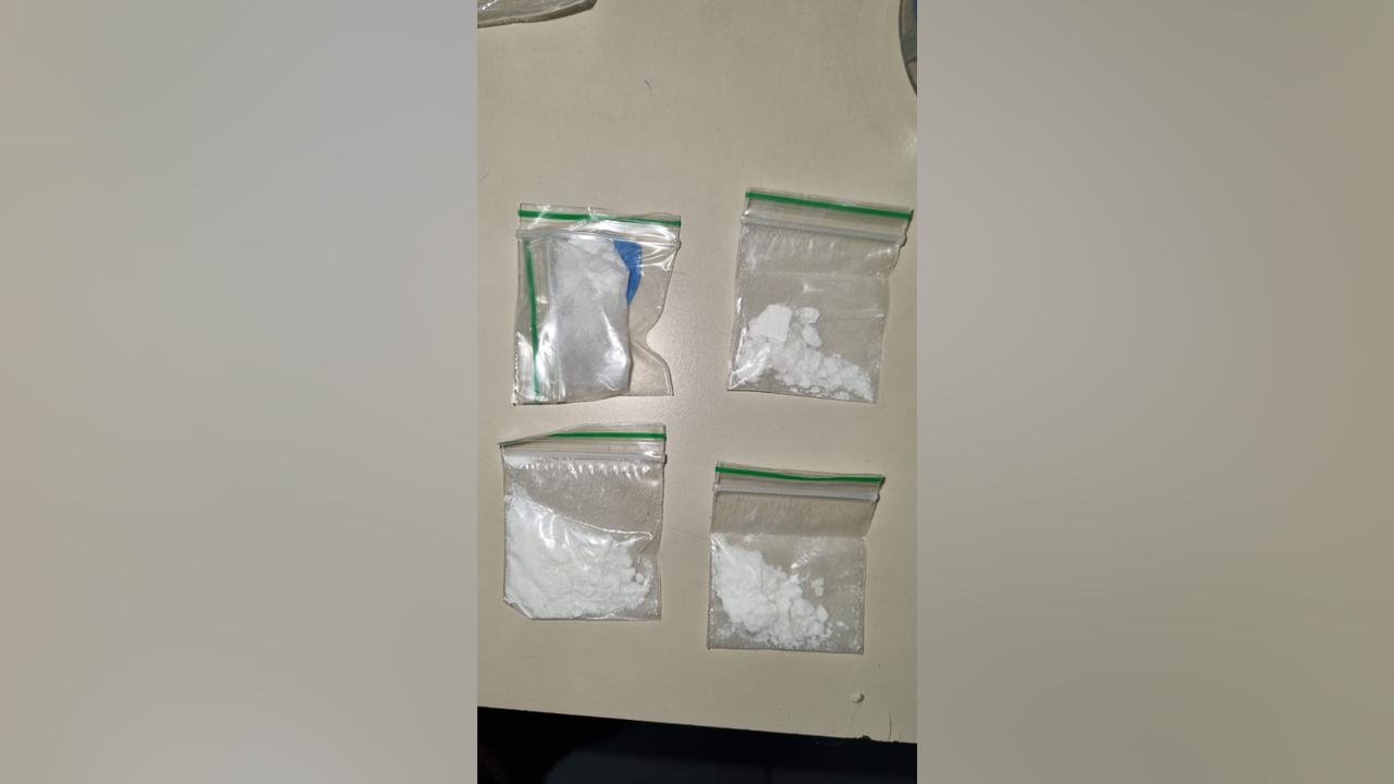 Na sequência a cerca de 200 metros foi logrado êxito em realizar a abordagem onde o condutor da motocicleta um masculino maior e outro passageiro uma feminina menor de idade, realizado busca pessoal onde nada de ilícito foi localizado, retornando então ao local onde foi visualizado o condutor arremessar o objeto sendo localizado um involucro plástico contendo quatro porções de substância análoga a cocaína já prontas para comercialização.