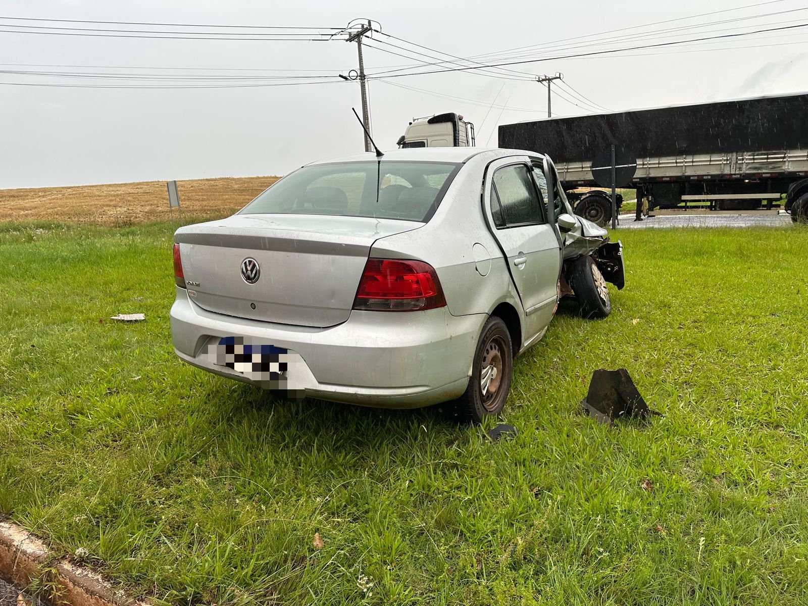 Uma colisão entre dois carros foi registrada na rodovia que liga São Jorge a Dois Vizinhos. A camionete seguia no sentido a Dois Vizinhos, enquanto o Voyage vinha de Verê, também em direção ao município.