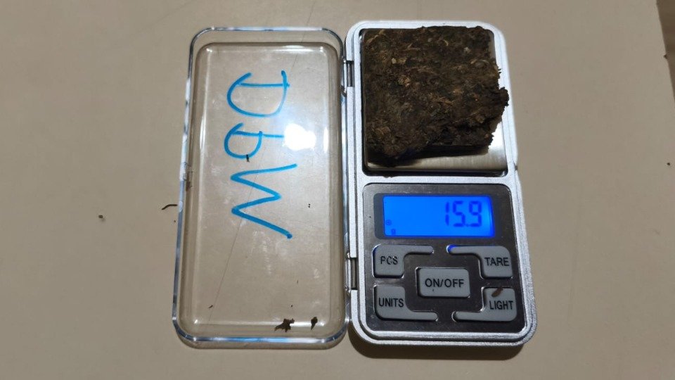 Buscas foram feitas no veículo e, na bolsa da mulher, foi localizada uma porção de maconha, que totalizou cerca de 15,9 gramas.