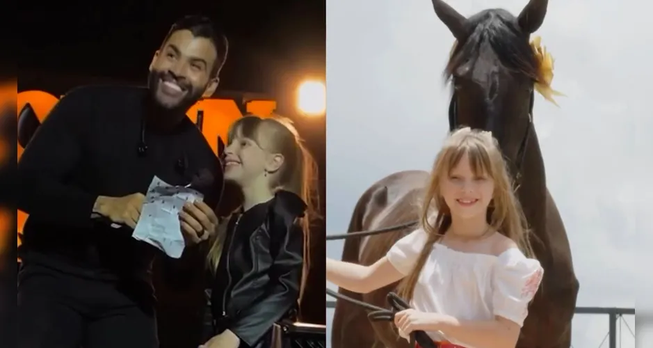 O cantor sertanejo Gusttavo Lima cumpriu a promessa feita a uma fã mirim e entregou, nesta segunda-feira (19), um cavalo de presente para a paranaense Isis Rafaelly Valentim, de 7 anos. A menina e sua família viajaram até a sede do haras do artista, em Bela Vista de Goiás (GO), para receber o animal, uma potra de pouco mais de um ano batizada de “Dominic”.