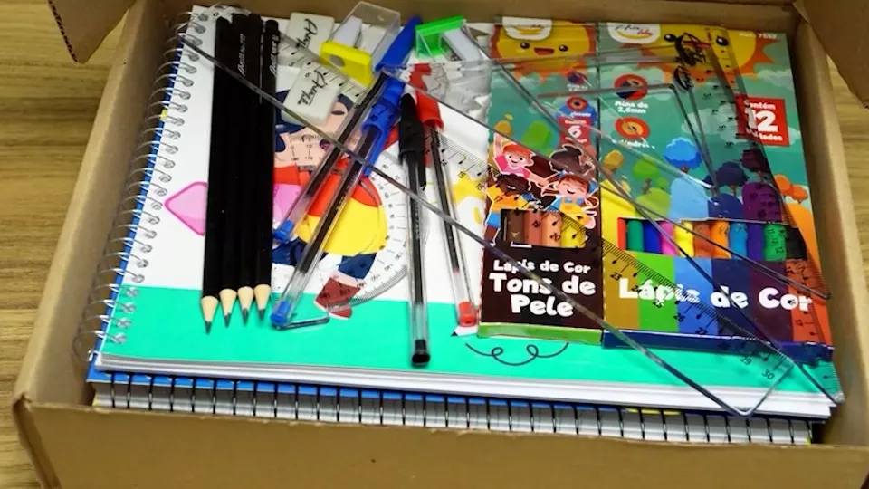 Os kits vão contar com cadernos, canetas, réguas, dependendo da necessidade de cada faixa etária.