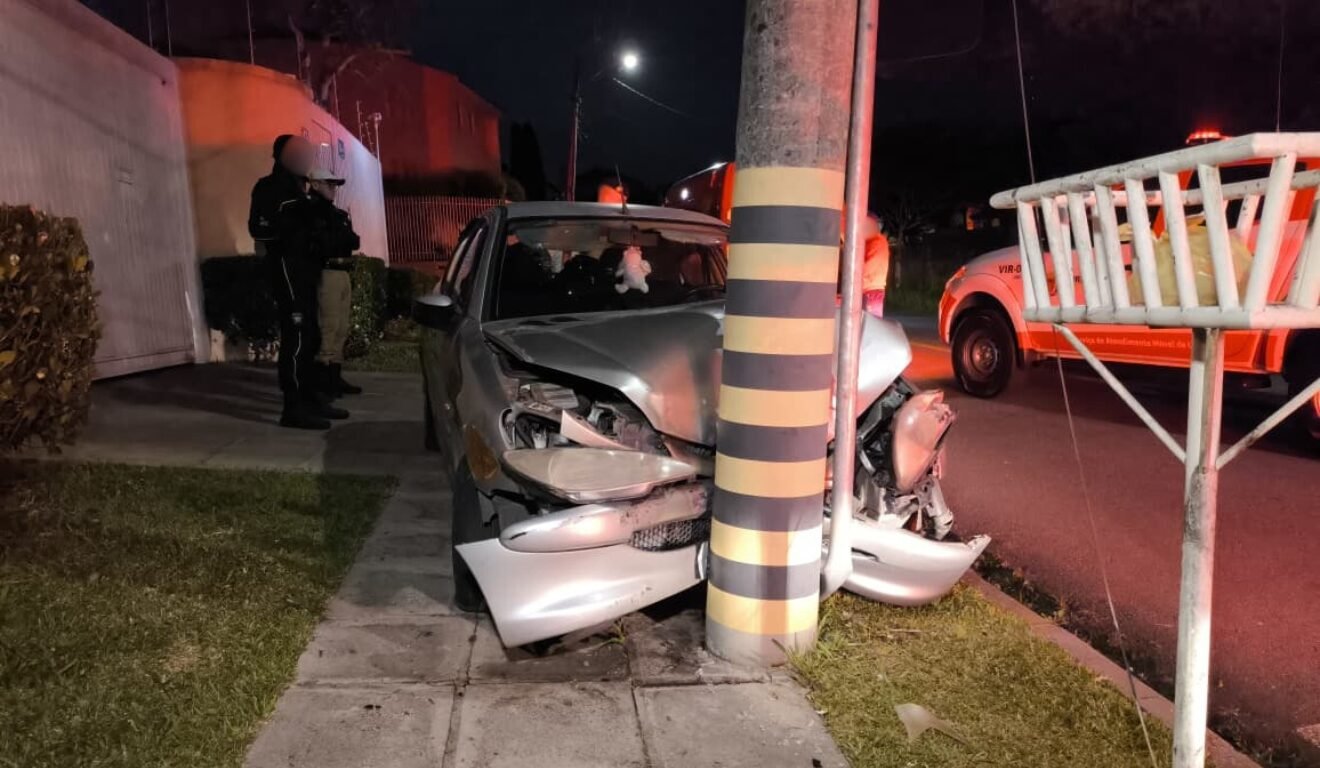 Um carro da marca Peugeot ocupado por uma família bateu em um poste na Rua Antônio Grade, no bairro Vista Alegre, em Curitiba, após o motorista afirmar que estava sendo perseguido por um veículo modelo Golf.