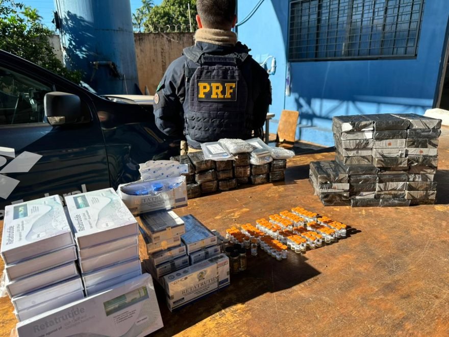 A Polícia Rodoviária Federal (PRF) apreendeu, na manhã desta sexta-feira (19), 210 ampolas de medicamentos injetáveis para emagrecimento e 04 ampolas de anabolizantes, no km 158 da BR-369, no município de Londrina, no norte do Paraná.