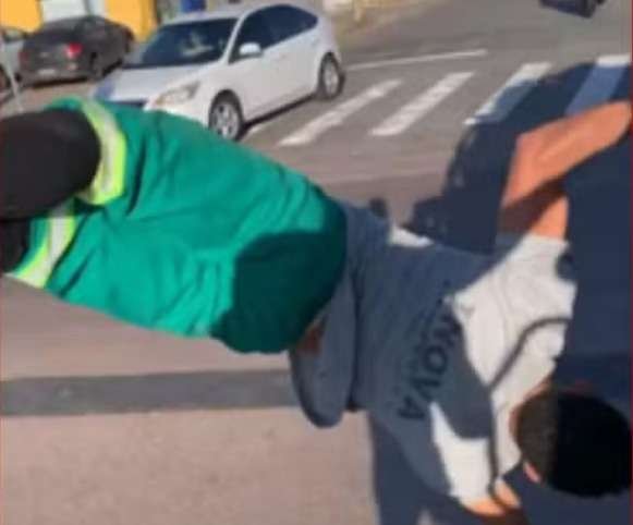 Nas imagens, divulgadas no dia 16 de agosto na conta pessoal, Denilson surge pendurado apenas pelas mãos na barra traseira do veículo, estrutura destinada à segurança dos coletores.