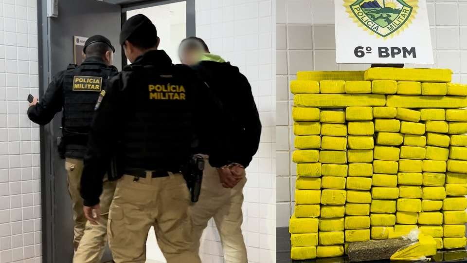 Ao revistar a bagagem, os militares localizaram e apreenderam aproximadamente 50 quilos de maconha. Em depoimento, o suspeito contou que havia vindo de Foz do Iguaçu utilizando um carro de aplicativo e foi deixado no acostamento da BR-277, próximo ao local onde foi preso.