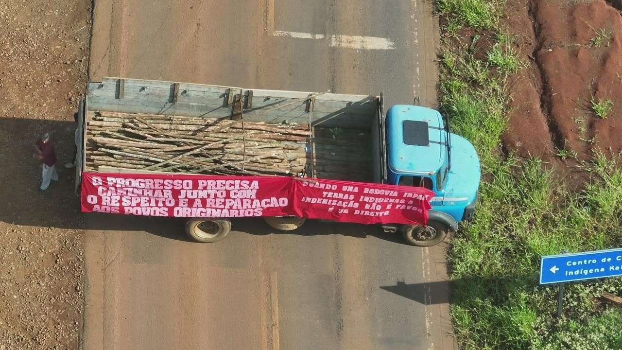 Um grupo de lideranças indígenas realiza, ao longo desta terça-feira (7), um protesto com bloqueio total da rodovia PR-281, nas imediações da Terra Indígena de Mangueirinha.