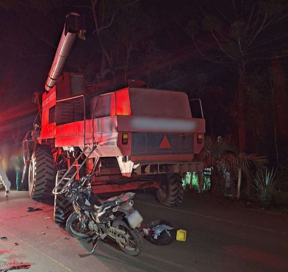 De acordo com a Polícia Rodoviária Estadual, o sinistro ocorreu no Km 00 + 300 metros da rodovia e envolveu uma colheitadeira Massey Ferguson e uma motocicleta Honda/NXR160 Bros.