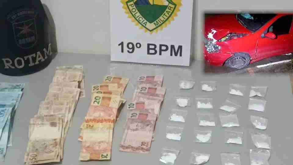Dupla tentou fugir da ROTAM, bateu carro durante acompanhamento e acabou presa com droga e dinheiro.