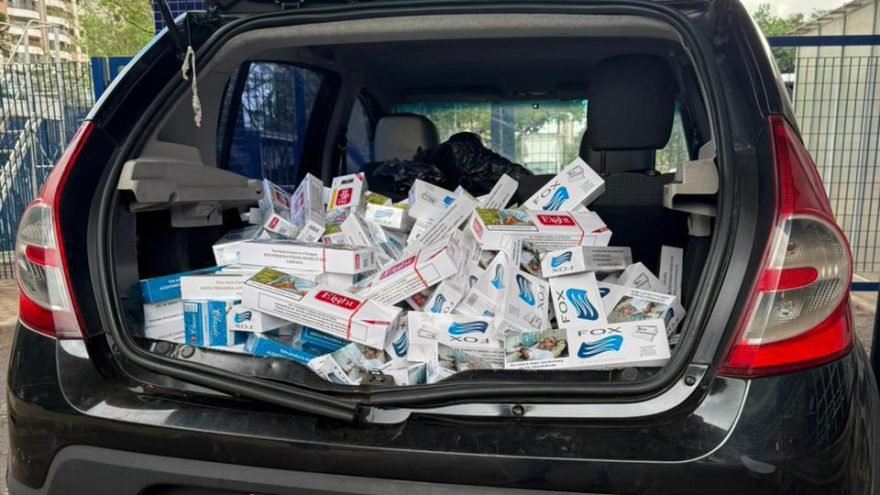 Durante o trabalho de fiscalização, as equipes abordaram um veículo no bairro Vila Portes, que transportava dezenas de maços de cigarros estrangeiros contrabandeados do Paraguai. Diante da constatação da irregularidade, o automóvel foi apreendido.