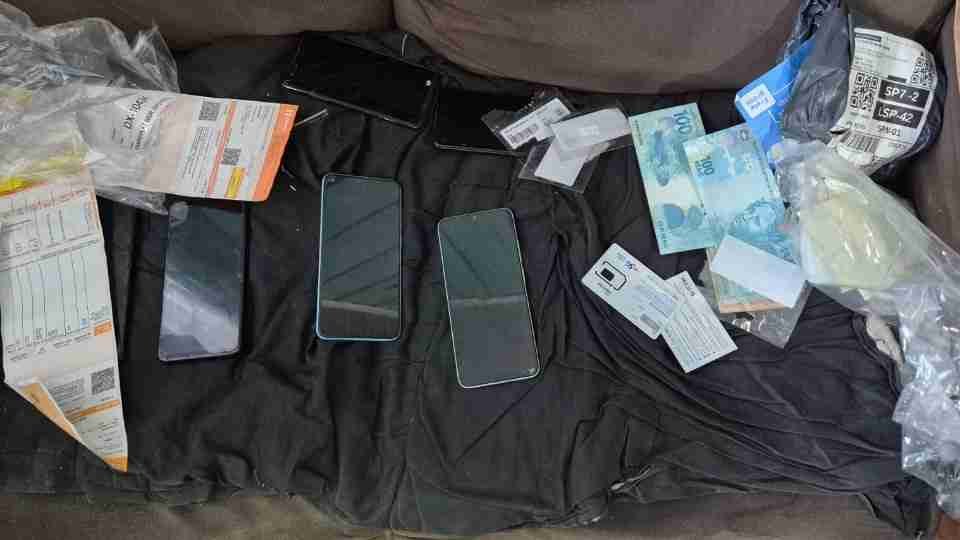 Os policiais cumpriram um mandado de busca e apreensão na casa do suspeito, onde foram encontrados R$ 3,6 mil em espécie, celulares, chips, documentos e cartões bancários. Todo o material será periciado.