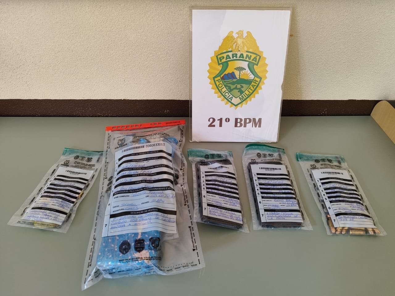 Durante a busca pessoal, nada de ilícito foi encontrado. No entanto, em vistoria no veículo, os policiais localizaram no porta-luvas um tablete de 858 gramas de substância análoga à maconha, além de um invólucro com nove gramas de maconha tipo capulho e 20 munições calibre 9 milímetros. Dois aparelhos celulares também foram apreendidos.