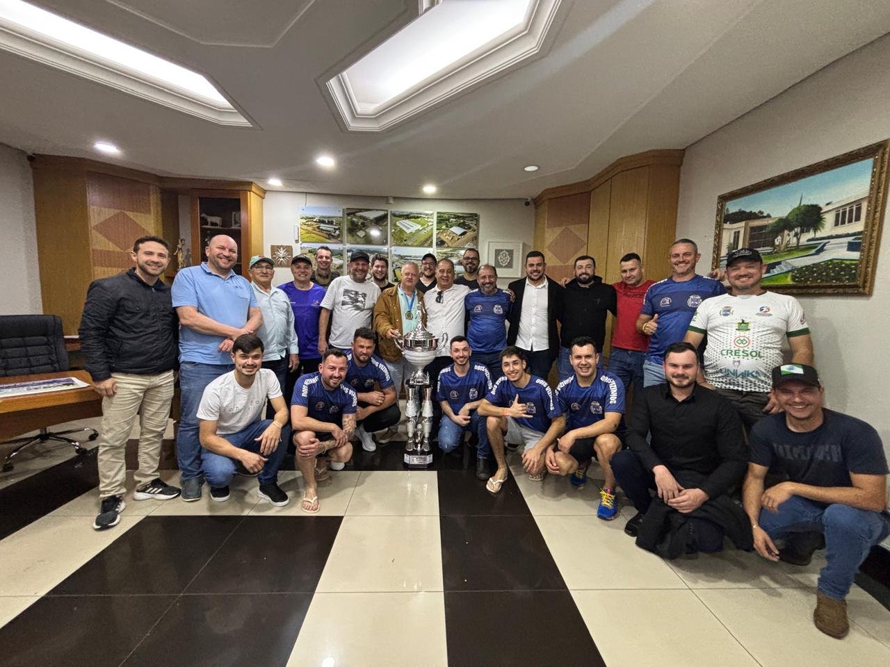 Na tarde de sexta-feira, 1º de agosto, o prefeito Carlinhos Turatto recebeu em seu gabinete os atletas, comissão técnica e dirigentes do Dois Vizinhos Futebol Clube, campeões da Copa Aesupar 2025 – Série Prata. A reunião serviu para celebrar publicamente a campanha vitoriosa e reforçar a importância do esporte como alicerce da formação social e da juventude regional.