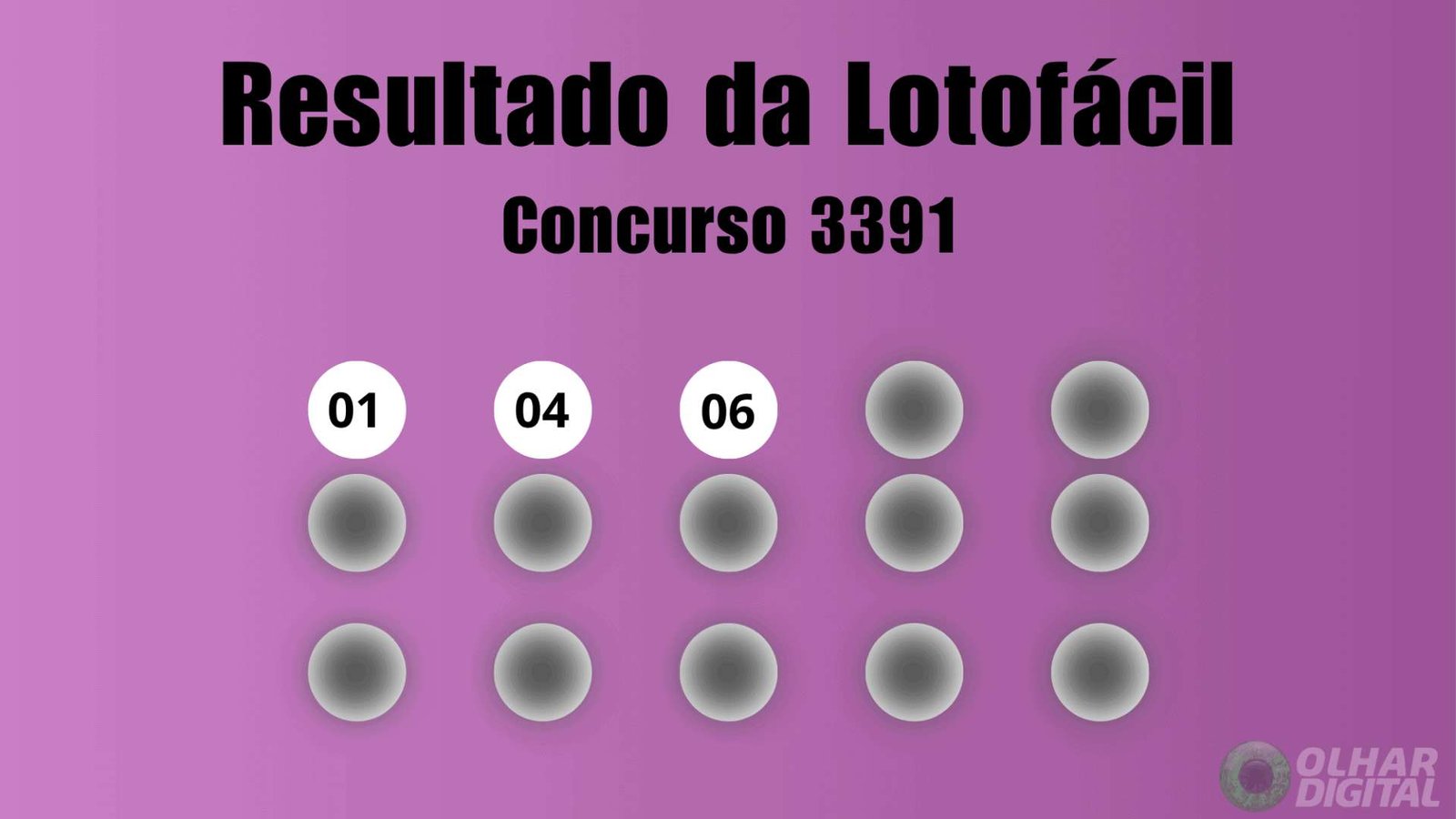 O sorteio da Lotofácil, concurso 3391, foi realizado na noite desta quarta-feira (14) pela Caixa Econômica Federal, em São Paulo (SP). O prêmio do concurso estava estimado em R$ 1,8 milhão.