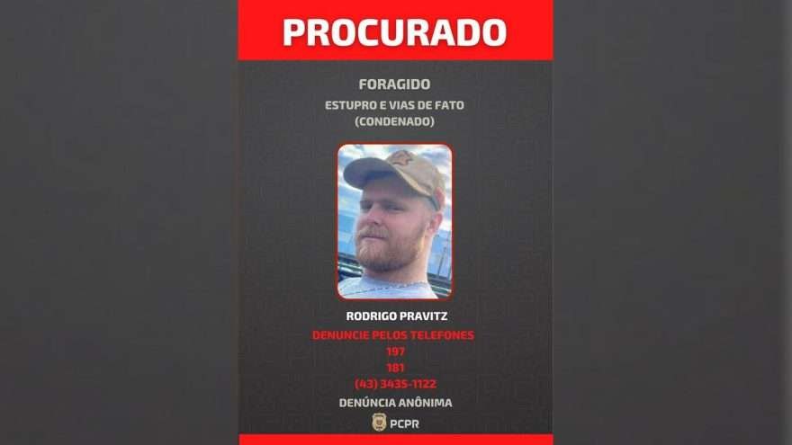 A Polícia Civil do Paraná (PCPR) divulgou, nesta quinta-feira (18), a fotografia de um homem de 27 anos condenado judicialmente pelos crimes de estupro e vias de fato no município de Manoel Ribas, localizado no Norte do Estado. O indivíduo recebeu sentença de 22 anos e 9 meses de reclusão em regime fechado.