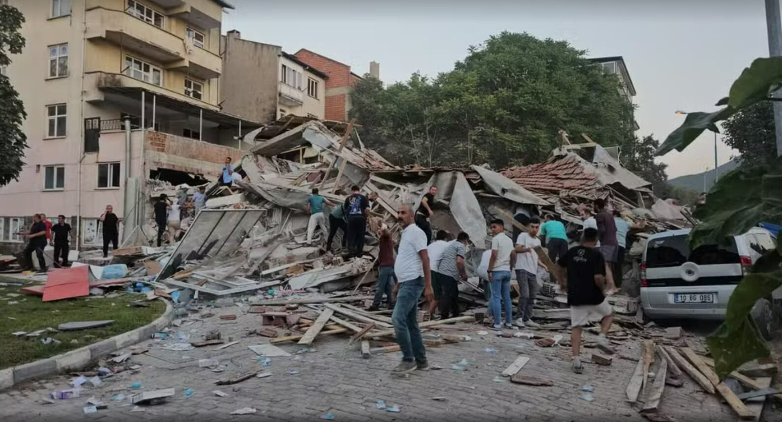 A agência de notícias AP afirma que o prefeito da cidade de Sindirgi, Serkan Sak, disse à emissora turca HaberTurk que quatro pessoas foram resgatadas de um prédio que desabou na cidade, enquanto as equipes de resgate tentavam alcançar outras duas pessoas na estrutura.