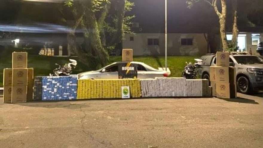 No interior do carro, os policiais encontraram 1.843 maços de cigarros de origem estrangeira, totalizando 18.430 carteiras. O veículo estava adaptado para o transporte da carga, contendo apenas o banco do motorista e os produtos cobertos por um pano.